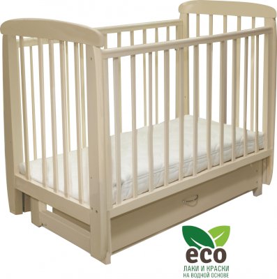 Кроватка "Соня 04" имеет механизм качания поперечный маятник. Механизм качания фиксируется. Возможен вариант с ящиком.