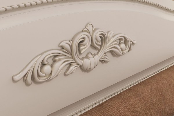 Кровать оснащена ортопедическим основанием, которое обеспечит здоровый и крепкий сон. Спинки кровати украшены объемным декоративным элементом и фрезеровкой с патиной. Матрас приобретается отдельно.