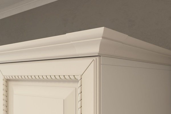 Шкаф совмещает в себе как функционал трюмо, так и вместительного шкафа. Множество скрытых зеркалом полок позволит хранить в нем максимальное количество вещей и аксессуаров. Столешницу из МДФ украшает фрезеровка. На фасады выдвижных ящиков нанесен фрезерованный рисунок. Дверца с зеркалом оснащена доводчиками, благодаря которым закрывается бесшумно.
