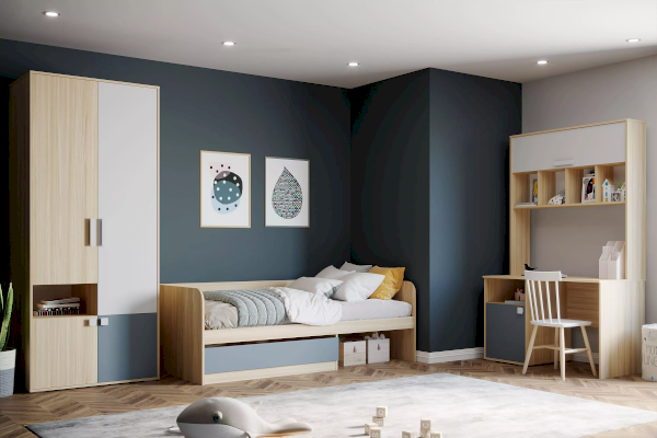 Традиционный цвет баунти динамично подчеркивает контраст маренго – цвета темной морской волны. Спинки кровати имеют скругленные края, что исключает риск случайных повреждений во время сна и активного времени ребенка. Кровать оснащена выдвижным ящиком для оптимального использования пространства. Его можно оборудовать как слева, так и справа, что позволит индивидуально подобрать нужное положение для удобства размещения вещей ребенка.