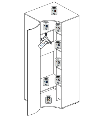 • Максимальная нагрузка на полку 10 кг