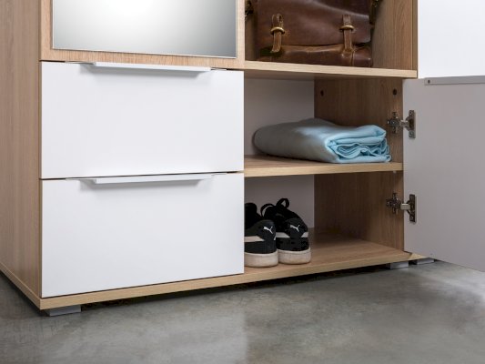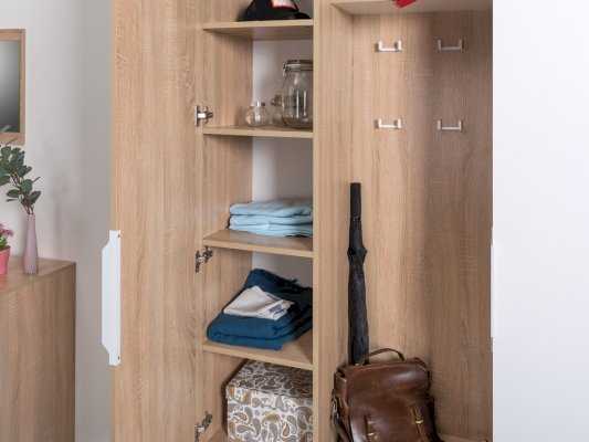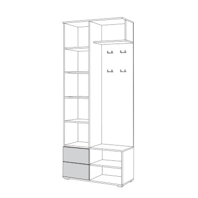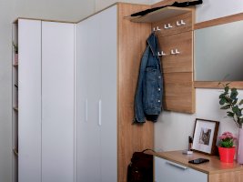 В линейке присутствуют модули с нестандартной конструкцией, которые не оставят без внимания узкие углы, повышая вместимость прихожей в разы.