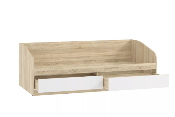 Одноместная кровать Фанк с лаконичным дизайном идеально подходит для оформления уютного спального уголка в детской. Вместительные бельевые ящики удобны для хранения постельных принадлежностей. Боковая спинка предотвращает истирание настенного покрытия. Кровать полностью безопасна для ребенка: у модели нет острых углов и накладных ручек на фасадах ящиков. Дополнительно рекомендуем приобрести ограждение 014.43-01, которое защитит ребенка во время сна.
