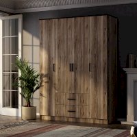 Четырехстворчатый шкаф "Титан" - это элегантное и функциональное решение в трендовом древесном декоре с текстурой дуба.
