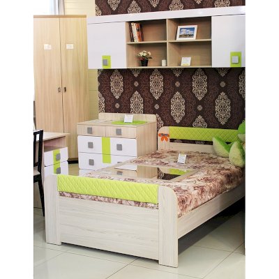 Мебель для детей «Стиль», выполненная в цвете «Лайм» подойдет как для младших, так и для старших школьников. Корпуса детской «Стиль» выполнены из ЛДСП толщиной 16 и 22 мм. Торцы обработаны кромкой ПВХ. Фасады выполнены из плиты МДФ, покрытых глянцевой пленкой белого цвета. Декоративные элементы на фасадах выполнены из МДФ с глянцевой пленкой ПВХ, по периметру подчеркнуты фрезеровкой. Все петли на фасадах с доводчиками. Направляющие на выкатных ящиках - шариковые, полного выдвижения. Мякгие элементы, скругленные углы, пластиковые ручки - все служит безопасности ребенка и придаёт эстетичный внешний вид.