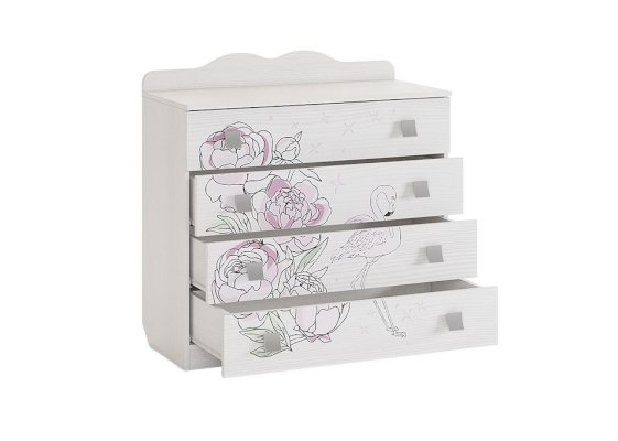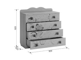 Стильный и модный комод детской «Фэнтези» - обрадует каждого ребенка. В 4 удобных выдвижных ящиках разместятся все необходимые вещи. Необычный принтерный рисунок на фасадах выдержан в общем стилистическом решении. Рисунок устойчив к истиранию и ультрафиолету.