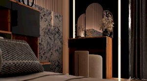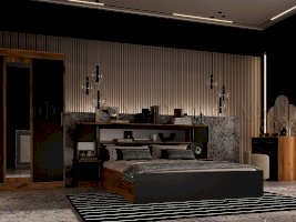 В самом названии этой спальни видится что-то мягкое, удобное и уютное. Интересное и функциональное дизайнерское решение – кровать с надстройкой – служит дополнительным местом для хранения вещей.