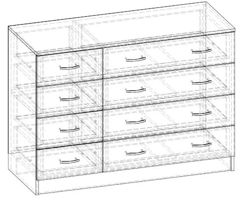 • Корпус, полки и фасады изготовлены из ЛДСП 16 мм с кромкой ПВХ 0,4 мм.