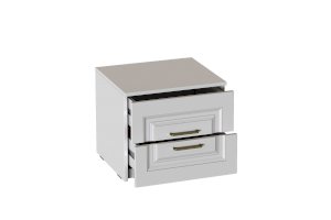 Тумба выполнена в цвете Айс 06 / Белый Аляска. Классическая фрезеровка фасадов и ручки-скобы из брашированного золота придают изделию особый шарм и элегантность. Тумба оснащена двумя ящиками полного выдвижения на шариковых направляющих, которые скользят бесшумно и плавно. Дно и задние стенки выполнены из ХДФ. На опорах размещены войлочные подпятники.